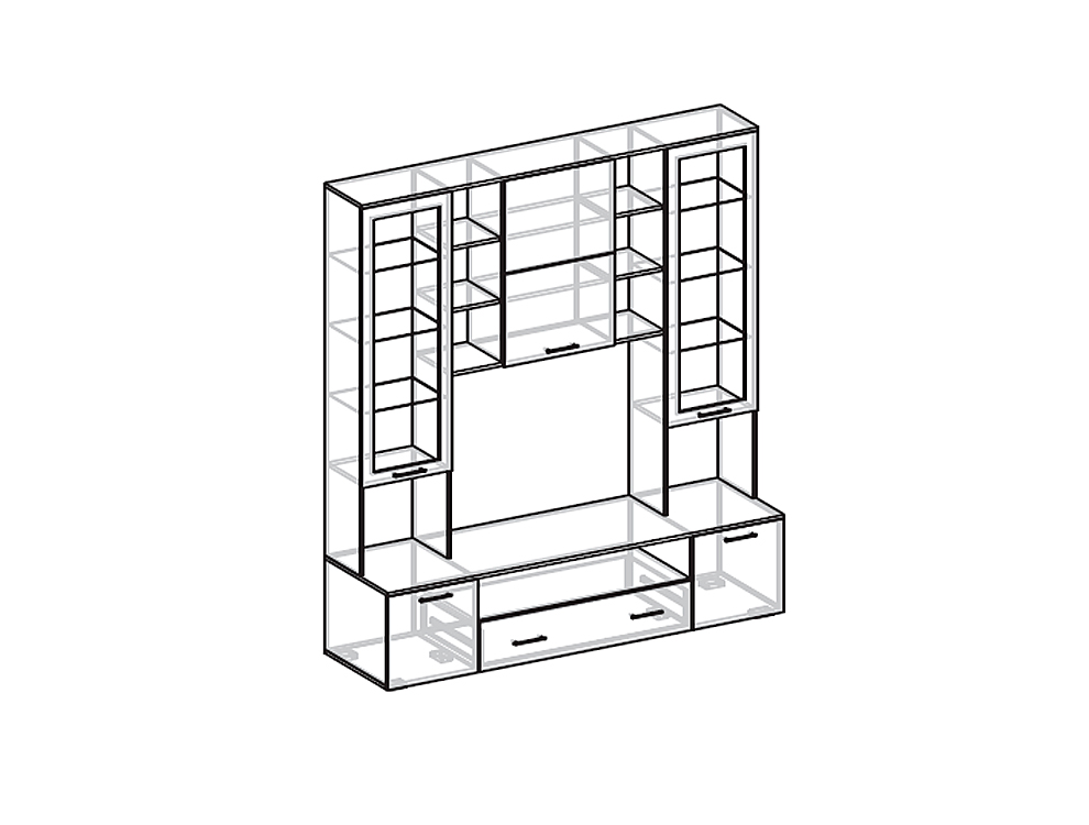 Центральная секция Барселона устанавливается в гостиную Барселона. Сочетает в себе все способы хранения: ящики, полки, открытые полки, боковые тумбы. По краям секции стекляные полки закрыты стекляными дверцами. В середине есть паз для телевизора (105 х 82 см). Шкаф выполнен в цветах Винтаж Оксид/Белый Глянец. Фасады изготовлены из МДФ, цвет фасадов Сонома темная и Белый глянец. В дверях установлены петли с доводчиками и металлические ручки. Задняя стенка (ДВП), кромка 2 мм. Корпус сделан из высококачественного ЛДСП.