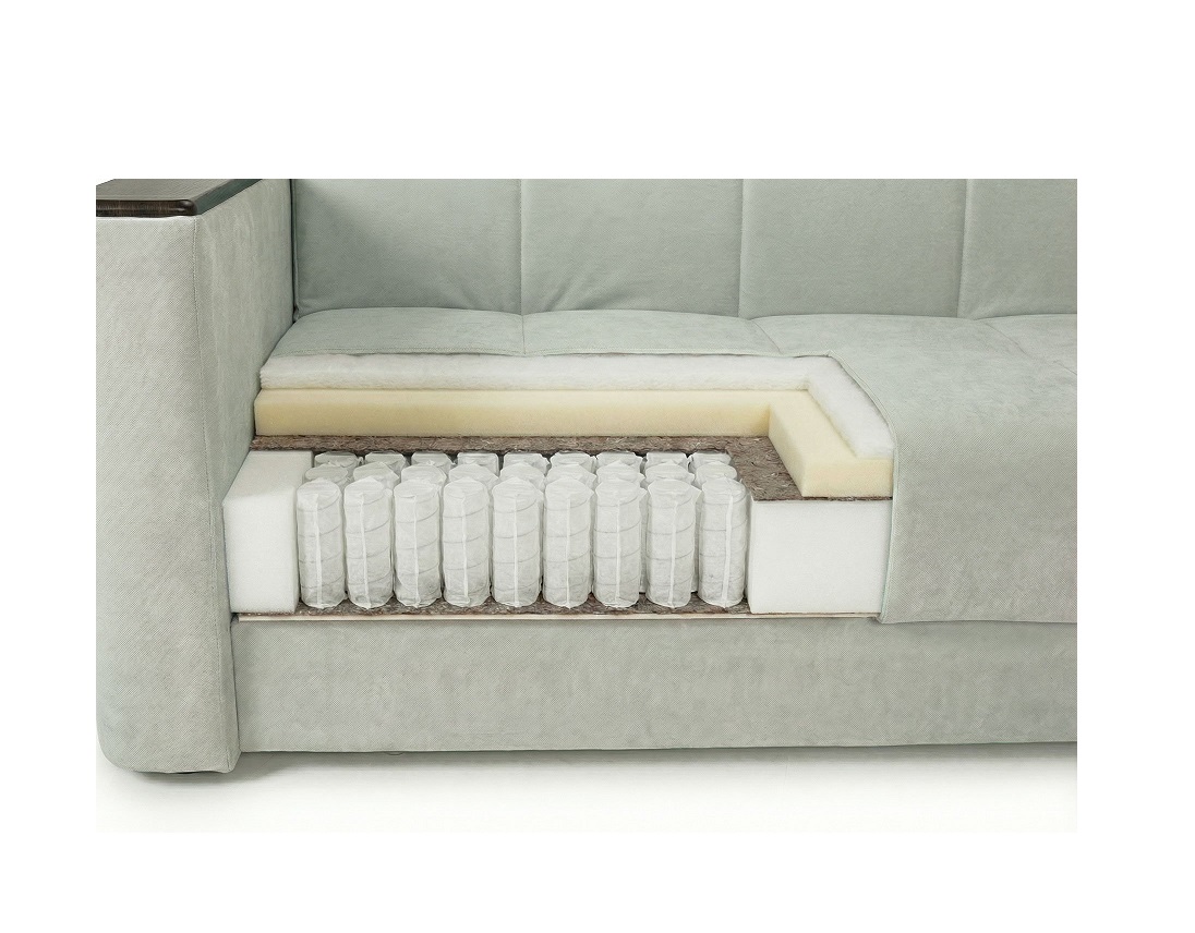 Каждый слой наполнения надёжно изолирован от каркаса и пружин слоем термопрессованного войлока. Это предотвращает деформацию наполнителей, преждевременный износ пружин, появление скрипов и посторонних звуков.