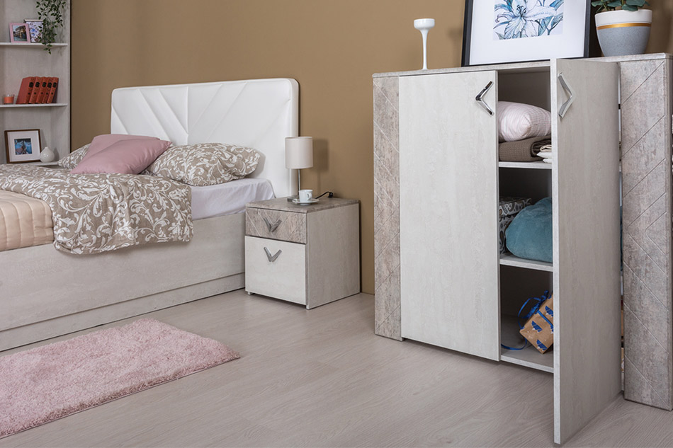 Изящный Комод 13.107 с дверцами дополнит как современный, так и классический интерьер. В нем успешно сочетаются стиль и практичность. За распашными дверцами расположены два отделения со съемными полками.
