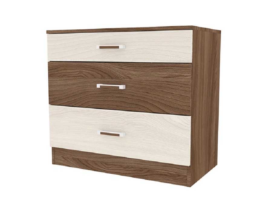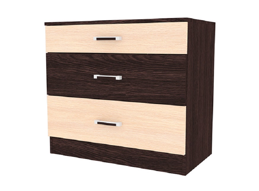 Комод Флоренция с тремя ящиками на роликовых направляющих. Представлен в двух вариантах цвета (Дуб молочный / Венге, Ясень Шимо). Кромка 0,4 мм