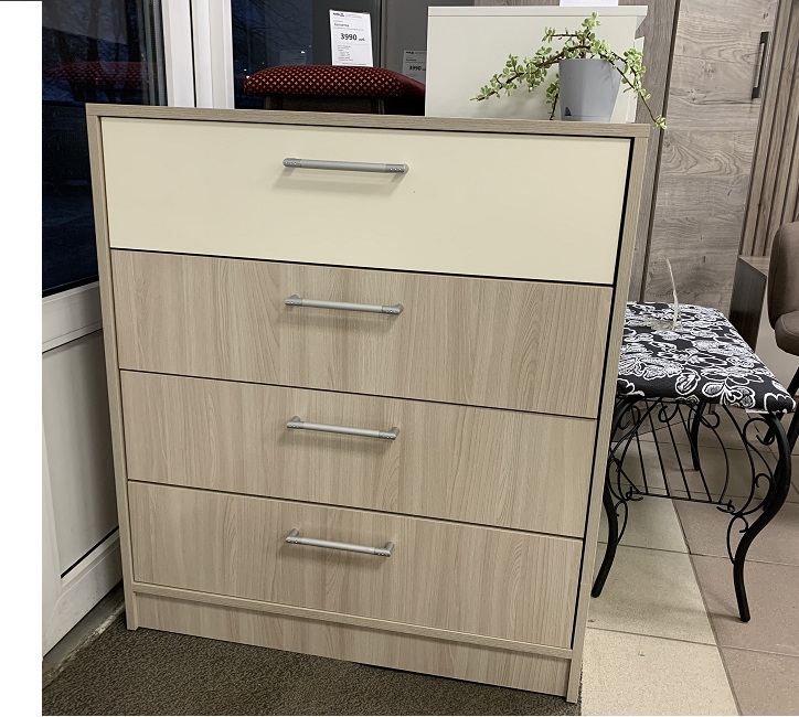Комод Камила 4 ящика - изготовлен из 16 мм ламинированной древесностружечной плиты цвет – Ясень шимо светлый. Направляющие роликовые.