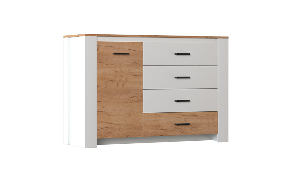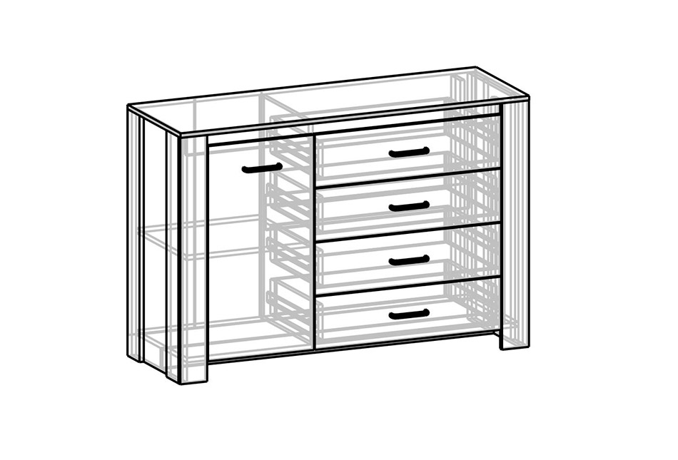 Комод комбинированный №2 Оксфорд - классический модуль в современном дизайне. Необходимый элемент в любой спальне. Изысканные и благородные цвета станут украшением любого интерьере. Комод оснащен четырьмя широкими полновыкатными ящиками, и нишей с полкой за распашной дверью. Очень вместительный модуль, в который можно уложить много вещей, аккуратно организовав пространство в комнате.