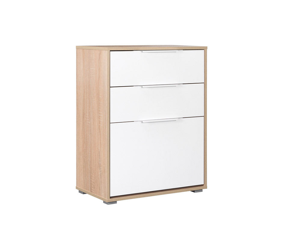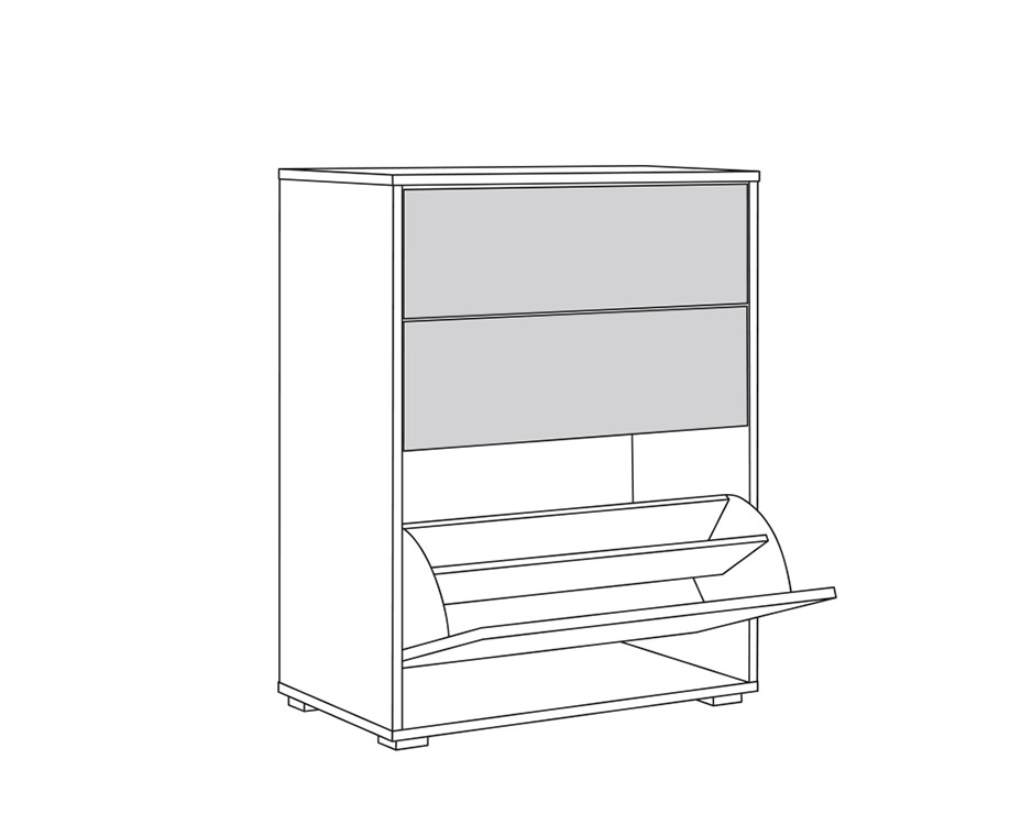 Вместительный Комод-обувница Куба 13.113 станет хорошим решением для хранения обуви. Комод содержит ящик для обуви с откидной дверцей и два полновыкатных ящика на шариковых направляющих.
