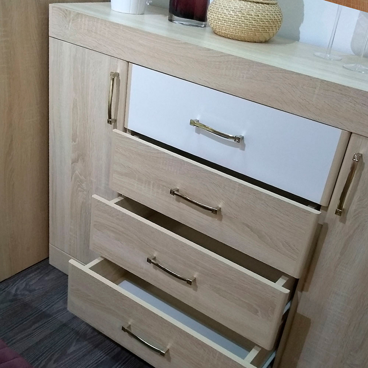 Комод Ника Н-16 - универсальный модуль для спальни. Комод оборудован по краям двумя глухими дверями, за которыми полки. Посередине четыре ящика. Оживляет и украшает комод верхний ящик в цвете "белый".