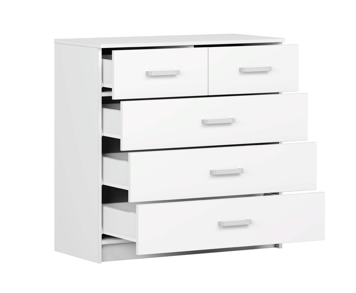 Комод Вега К-04 Белый - недороге сбалансированное решение для домашнего интерьера. Направляющие ящиков роликовые. Ручки в цвет фасадов белый. Также изготваливается в цвете Венге / Дуб молочный.