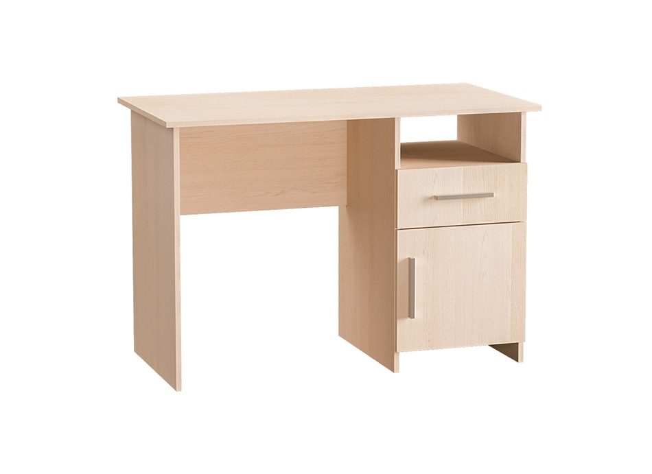 Комфорт 11СК Классический письменный стол поможет организовать рабочее пространство. Благодаря своей компактности, он отлично впишется даже в небольшую комнату. На просторной столешнице легко разместить все самое необходимое для работы или учебы, а выдвижной ящик и большая ниша с распахивающейся дверцей позволят грамотно организовать пространство. Открытая полка под столешницей создаст дополнительную зону для хранения. Это особенно актуально, если модель будет использоваться в качестве детского стола для занятий уроками. Универсальная модель собирается в любую сторону.