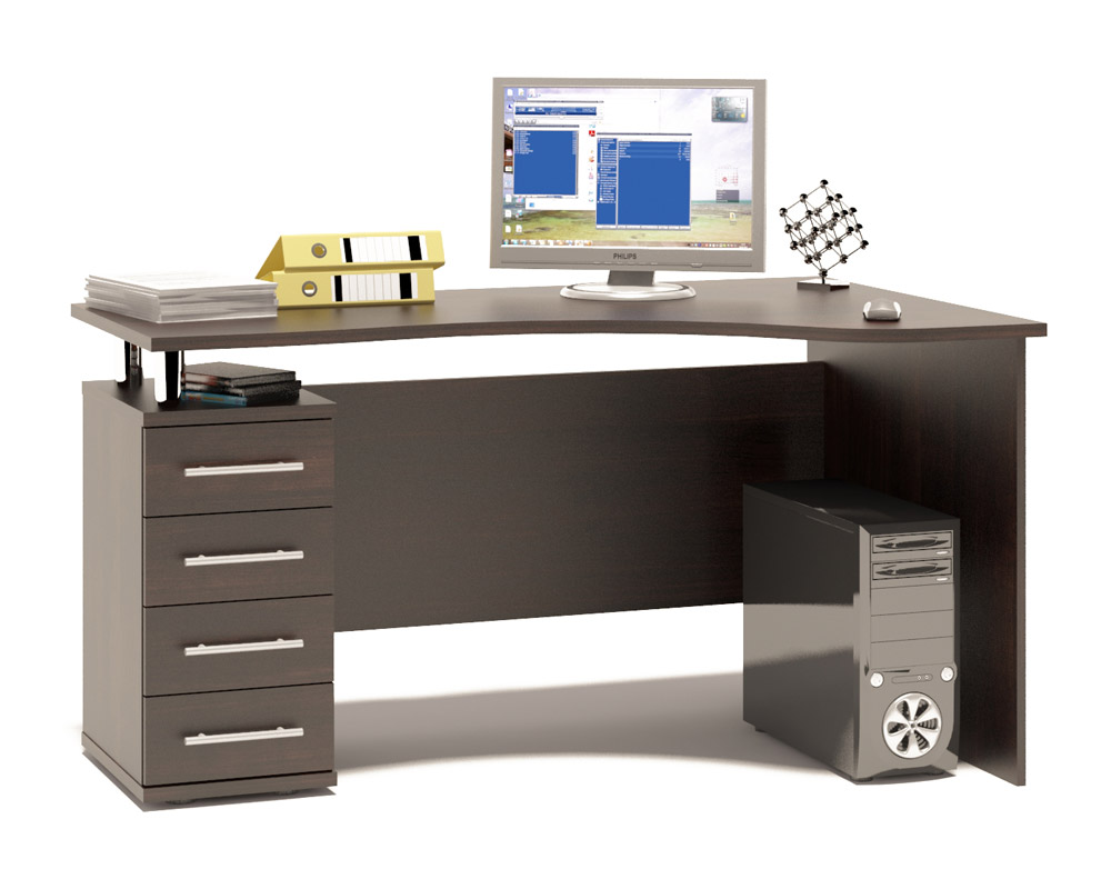 Компьютерный стол КСТ-104.1 - эргономичный стол с тумбой с выдвижными ящиками. Столешница имеет удобный плавный изгиб и изготовлена из высококачественного ДСП отечественного производства толщиной 22 мм, отделана кромкой ПВХ 2 мм. Стол позволит организовать полноценное и удобное место для работы.