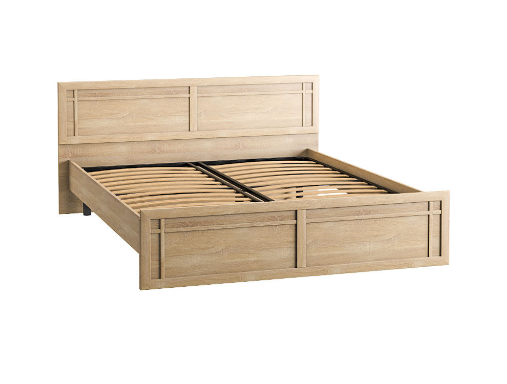 Кровать двойная Марко - стильная и изящная кровать с дизайнерскими прямыми формами на спинках. Входит в комплект спальни Марко. С этой кроватью ваш сон будет крепким и здоровым. Высокая спинка позволяет вам читать или смотреть телевизор в удобной позе. Два цвета на выбор, Дуб Сонома и Орех Селект Каминный. Каркас сделан из высококачественного ЛДСП, фасады спинок из МДФ. В комплекте идет металлическое основание с ламелями и 5 опор под основание. Спальное место 200 х 160 см.