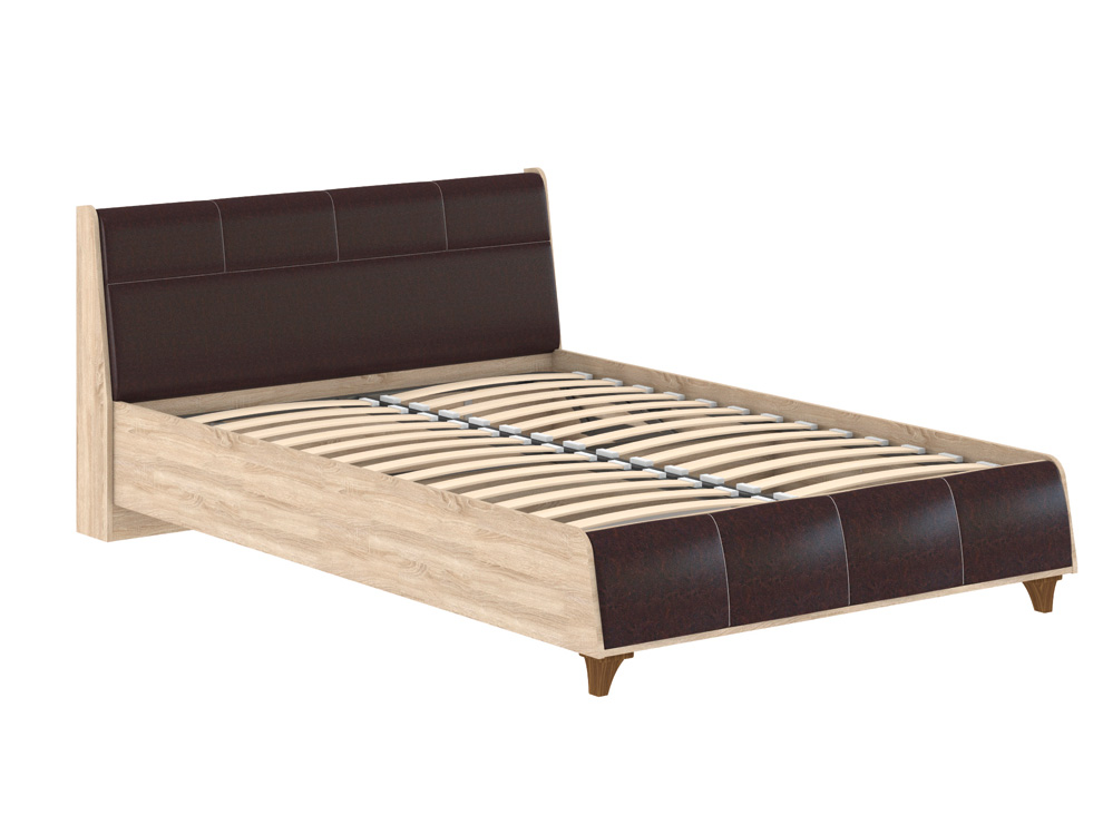 Кровать Келли - дизайнерская кровать в приятных натуральных цветах. Погрузит вас в атмосферу спокойствия и умиротворения. Крепкий сон - залог хорошего здоровья. Мягкие кожаные накладки на кровати добавляют изыска всей коллекции Келли. Идеально сочетается со всей мебелью в спальне Келли. Спинка у головы позволяет вам читать или смотреть телевизор в удобной позе. Кровать выполнена в цвете Дуб Сонома, кожаные вставки цвет Темно-коричневый. Каркас сделан из высококачественного ЛДСП. Комплектуется основанием с ламелями и подъемным механизмом. Рекомендуемая высота матраса от 18 см.