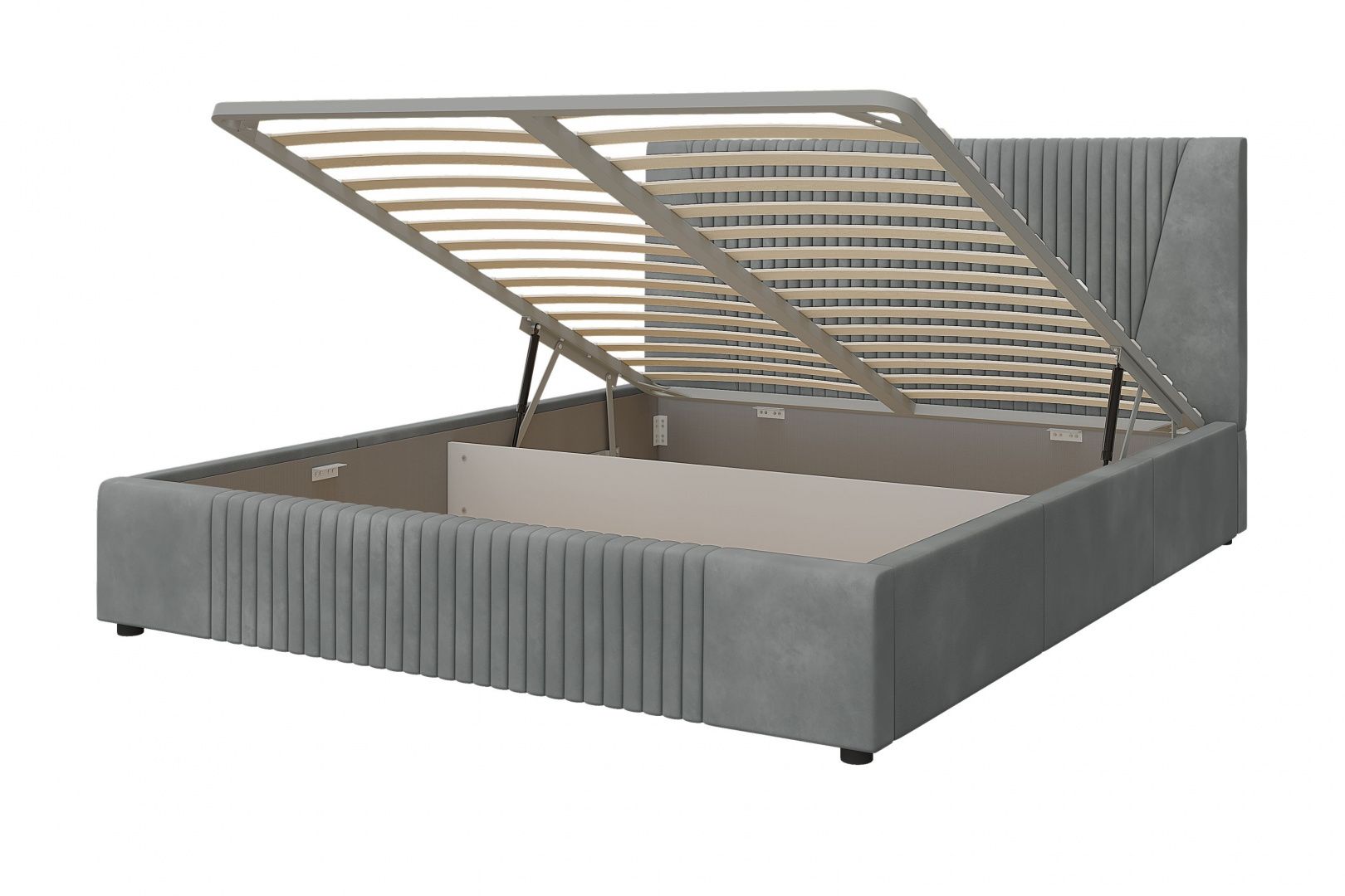 Кровать мягкая с подъемным механизмом Нельсон Серый - классический минимализм. Основание с ламелями и подъмным механизмом идет в комплекте. Ткань Велюр в холодном сером оттенке. (Велютто 32)