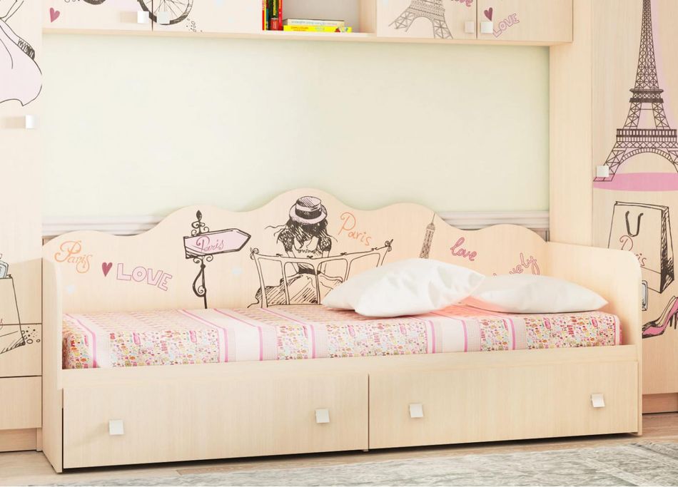 Кровать Париж №2 - стильная кровать с цветной спинкой. Не только красивая, но и практичная модель: в выдвижных ящиках удобно хранить постельное бельё.