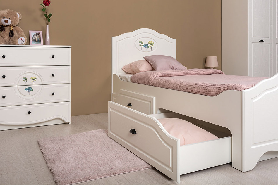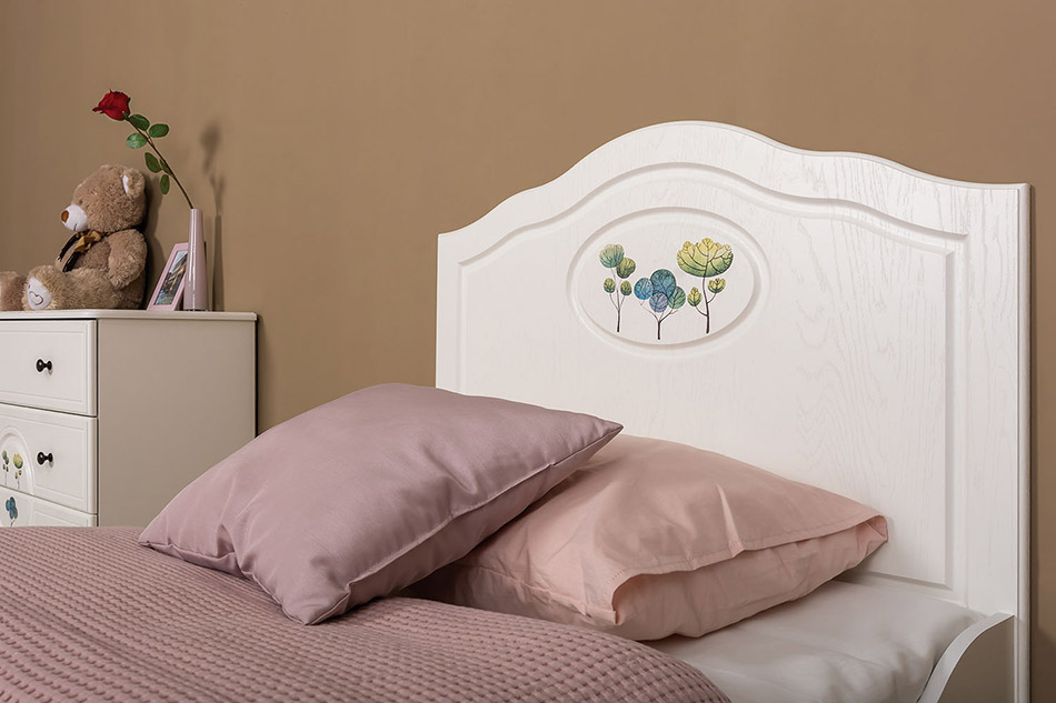Кровать Роуз 11.27 - модуль для детской комнаты настоящей принцессы. Декор и рисунок на фасадах способствуют созданию сказочной атмосферы. Изысканные линии и чистый цвет гармонируют с женственностью и изящностью вашей девочки.