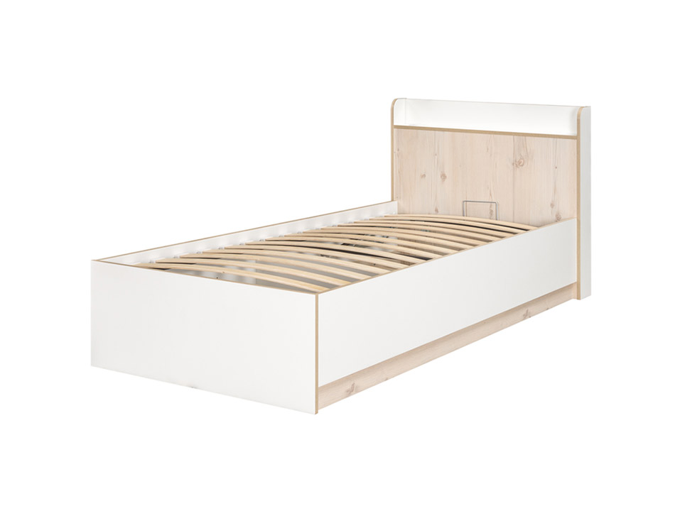 Малогабаритная кровать с подъемным механизмом Веста 11.14 со спальным местом 900 х 2000 мм. Ортопедическое основание укомплектовано подъемным механизмом, что увеличивает место для хранения, где можно расположить коробки или сезонную одежду.