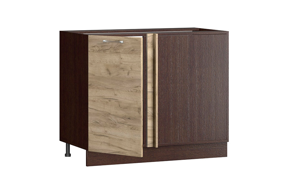 Кухня Шанталь 2 Дуб Приморский - выполнена в классическом стиле. Угловая кухня будет солидно смотреться в больших помещениях. Цвет корпуса: венге, белый. Фасад МДФ. Корпус Эко ЛДСП 16мм. Ручки металлические. Крепежный элемент - мебельный конфирмат. Фасады навешиваются на обе стороны. Навешивание шкафов при помощи DIN-реек и подвесов регулируемых. Стекло прозрачное с пескоструйной обработкой. Столы стоят на регулируемых ножках, закрытые цоколем. Полновыкатные направляющие. Петли с доводчиком.