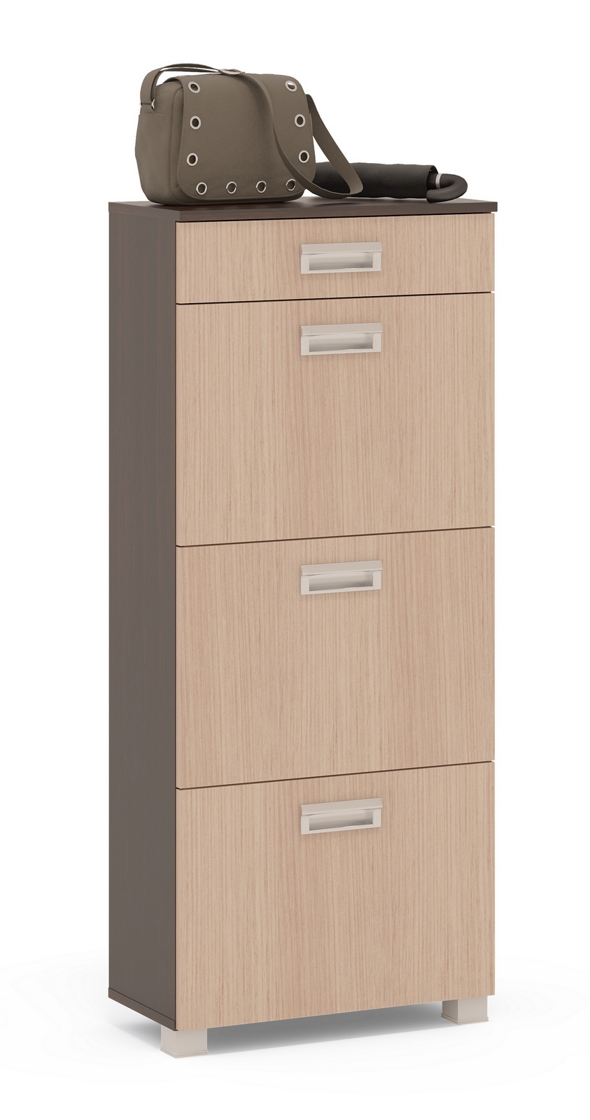 Обувница ТО-3М выполнена из ЛДСП 16 мм с ПВХ кромкой 0,4 мм. Врезные металлические ручки и сетки для обуви создают дополнительный комфорт и надежность. При сборке необходимо крепить обувницу к стене для лучшей устойчивости.