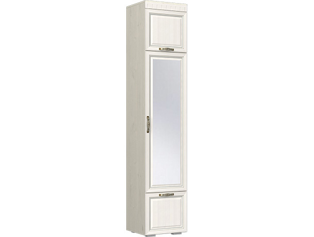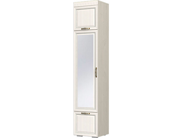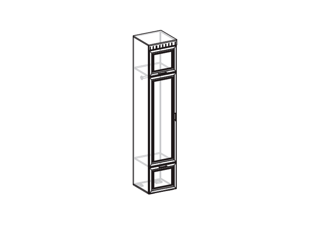 Пенал Меценат - небольшой, в то же время, вместительный шкаф для хранения одежды. Подходит для спальни, прихожей, гостиной. На двери установлено зеркало. Пенал выполнен в цветах Дуб Приморский/Вуд Дуб Светлый. Фасад дверцы изготовлен из МДФ с красивой резной текстурой. В дверях установлены петли с доводчиками, ручки дверей металлические. Задний щит (ДВП) сделан в цвет корпуса. Кромка ПВХ 2 мм. Наполнение шкафа- выкатная штанга и две полки. Дополнительно можно приобрести еще 3 полки.