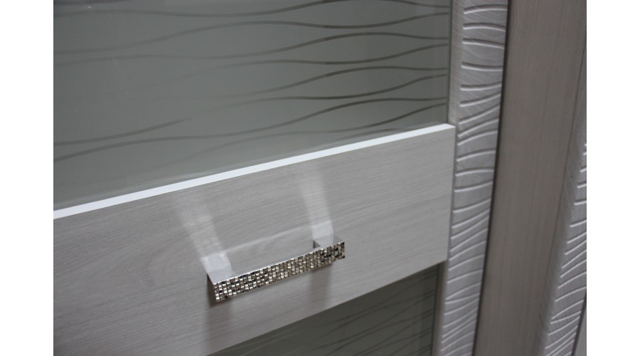 Пенал со стеклом Ривьера-Л - прекрасный выбор для светлого, чистого интерьера гостиной. Один из модулей коллекции с одноименным названием. Материал изготовления - ЛДСП 16 мм, накладки - МДФ. Цвет - Анкор светлый. Кромка ПВХ. Стёкла с ненавязчивым геометрическим рисунком.