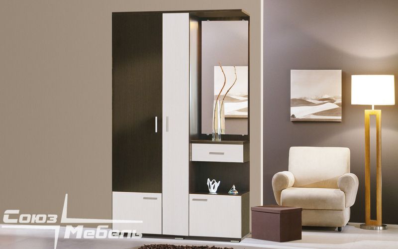 Прихожая №14 Статус производства фабрики Союз мебель. Представлена в комбинации двух цветов (Фасад: Бодега \ Корпус: Венге). Все горизонтали прихожей изготовлены из ЛДСП 22 мм. Вертикали - 16 мм.