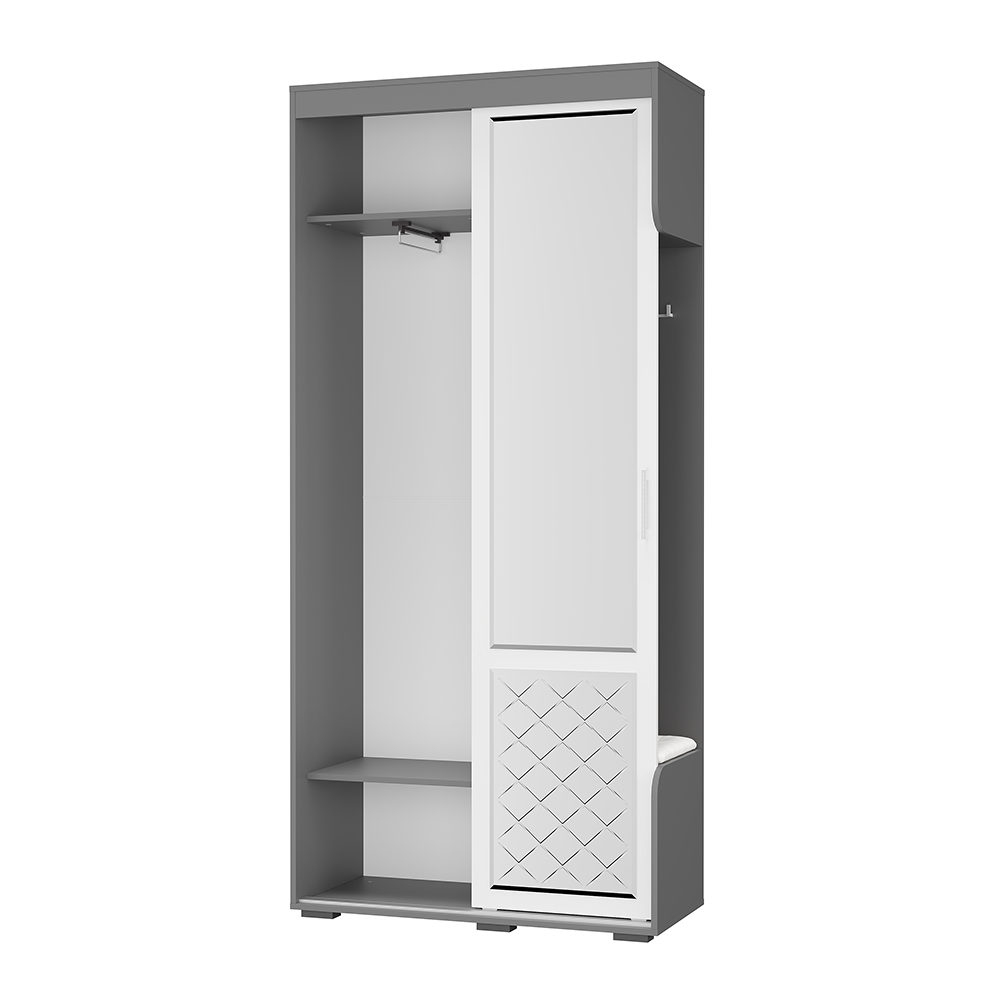 Прихожая-купе Варда - стильная, современная и, что не мало важно, вместительная. Отлично подойдет как для загородного дома, так и для квартиры. Цвет каркаса - Графит. Зеркало в белой раме. Собирается как на левую, так и на правую сторону. Сиденье - экокожа белого цвета.