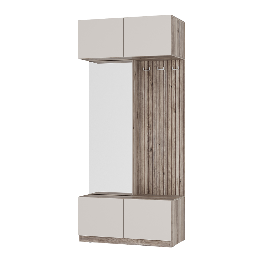 Стильная и компактная прихожая «Урбан» с фотопечатью – это оптимальное сочетание открытых и закрытых зон для хранения верхней одежды, головных уборов, обуви и аксессуаров.