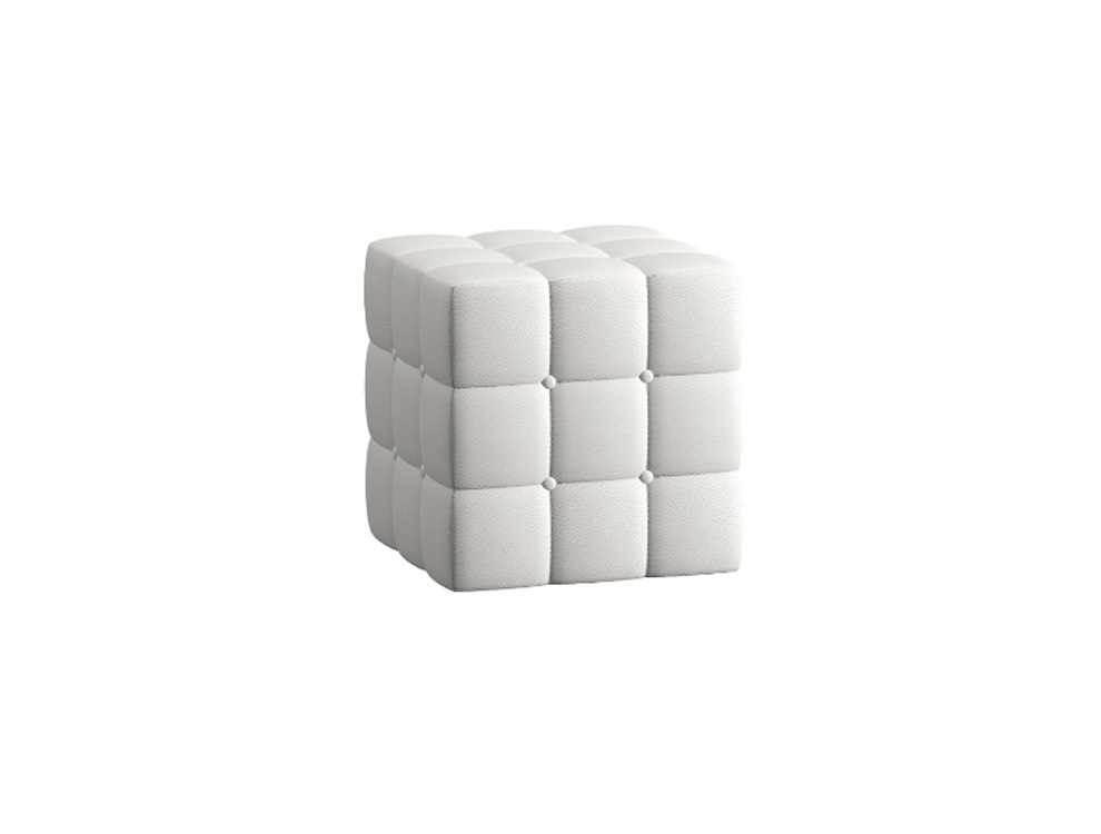 Пуф Камея- удобное и очень мягкое место для сидения в спальне Камея. Небольшой пуф полностью обит мягкой кожей белого цвета. Сочетается по цвету со всеми элементами спальной. Пуф стоит на колесных опорах, вы не будете царапать пол. Каркас сделан из высококачественного ЛДСП.