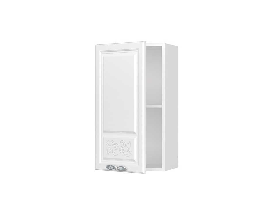 Шкаф-антресоль ША-40 для кухни Модена - входит в состав модульной кухонной коллекции Модена. Представлен в единственном сочетании цветов: Корпус (ЛДСП): Белый, Фасады (МДФ): Белый глянец с фрезеровкой. Петли с доводчиками. Задний щит ДВП в цвет корпуса. Ручки металлические. Шкаф навешивается при помощий DIN-реек с регулируемыми подвесами.