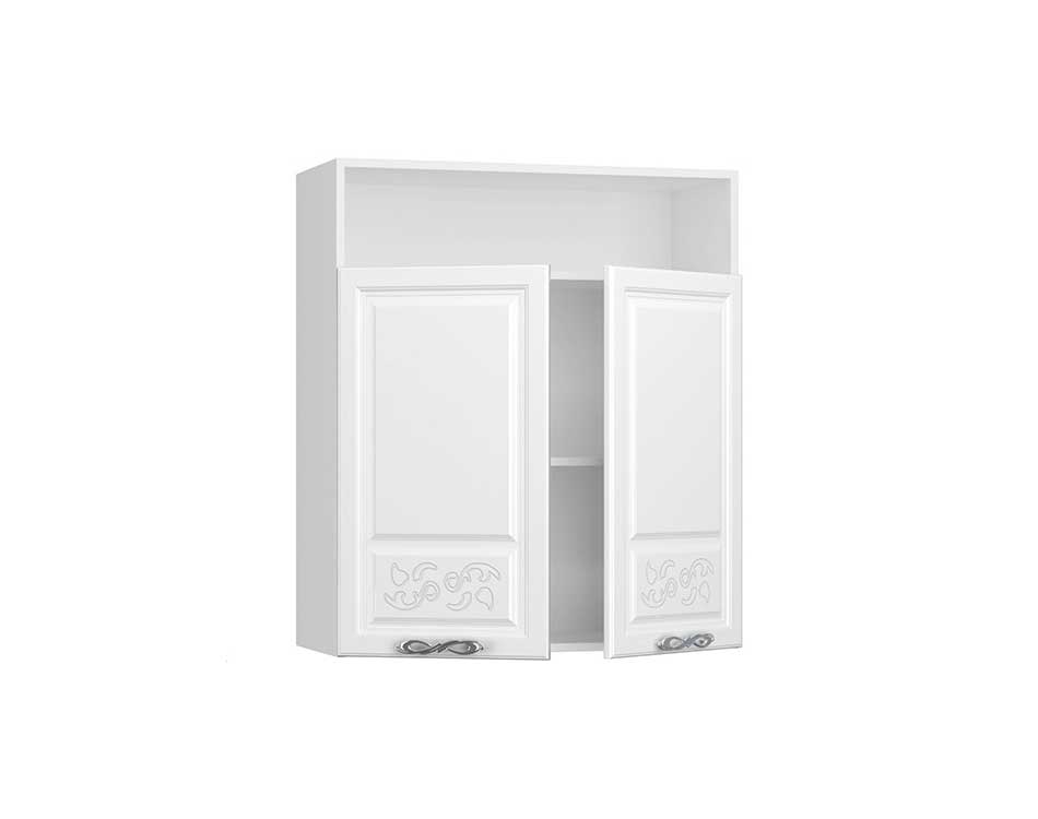 Шкаф-антресоль с двумя дверьми и открытой полкой ША-80-Н для кухни Модена - входит в состав модульной кухонной коллекции Модена. Представлен в единственном сочетании цветов: Корпус (ЛДСП): Белый, Фасады (МДФ): Белый глянец с фрезеровкой. Петли с доводчиками. Задний щит ДВП в цвет корпуса. Ручки металлические. Шкаф навешивается при помощий DIN-реек с регулируемыми подвесами.