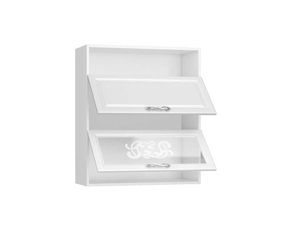 Шкаф-антресоль с двумя вертикально открывающимеся дверьми со стеклом и дополнительно открытой полкой ШАВ-80-2ДН для кухни Модена - входит в состав модульной кухонной коллекции Модена. Представлен в единственном сочетании цветов: Корпус (ЛДСП): Белый, Фасады (МДФ): Белый глянец с фрезеровкой. Петли с доводчиками. Задний щит ДВП в цвет корпуса. Ручки металлические. Шкаф навешивается при помощий DIN-реек с регулируемыми подвесами.