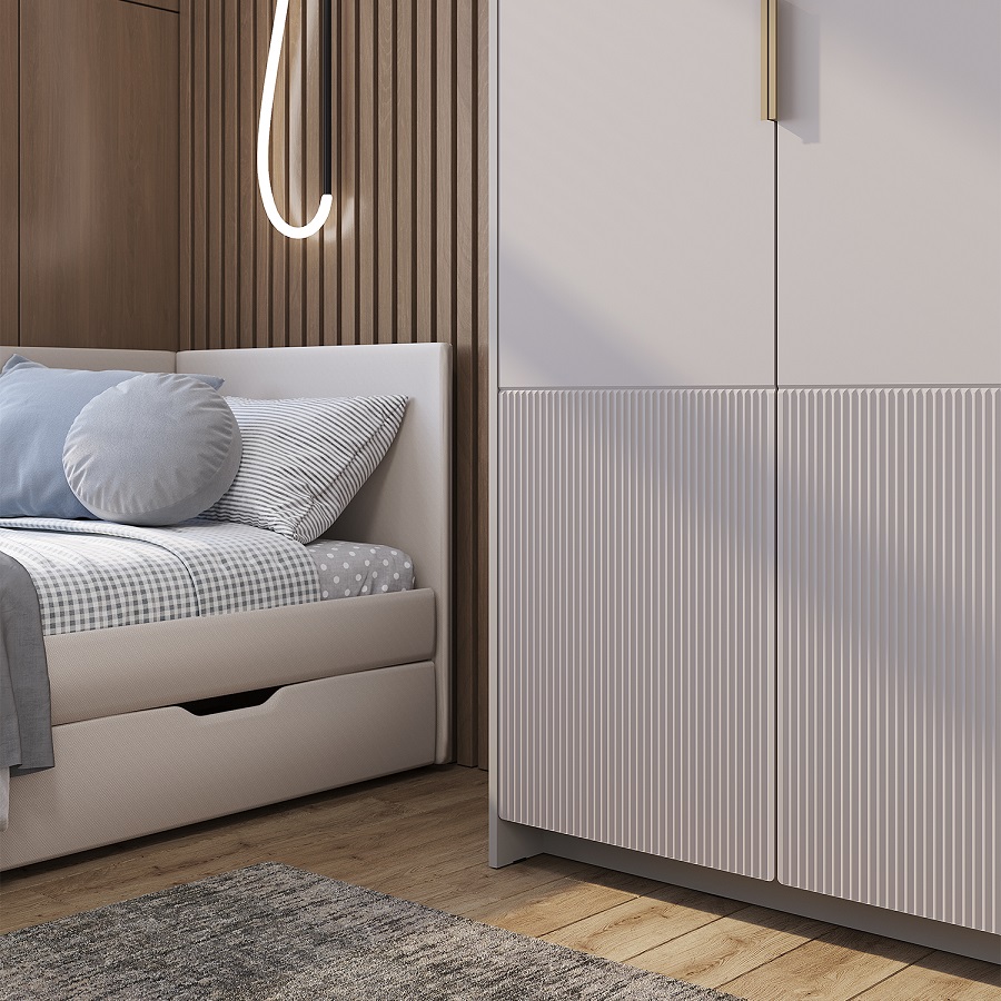 Толщина кромки 0,4 мм, ручки пластиковые в цвете Пыльно-матовое золото, опоры-подпятники пластиковые. Элегантная фрезеровка на фасадах. Ящики на полновыкатных направляющих. Максимальная нагрузка на ящик – 5 кг. Максимальная нагрузка на полку – 10 кг. Максимальная нагрузка на штангу - 10 кг.