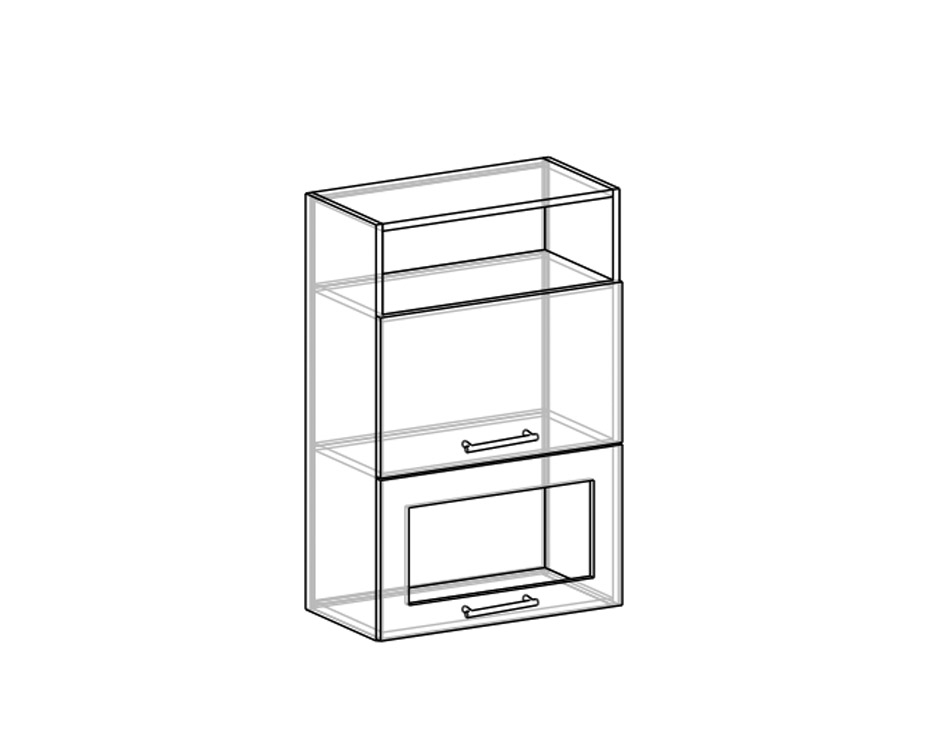 Шкаф-антресоль ШАВ-60-2ДН (920) для кухни Корсика - классический и вместительный модуль для организации пространства. Шкаф-антресоль содержит две вертикальные дверцы одна над другой, одна из которых со стеклом. На самом верху расположена открытая ниша. Модуль подходит для установки вытяжки.