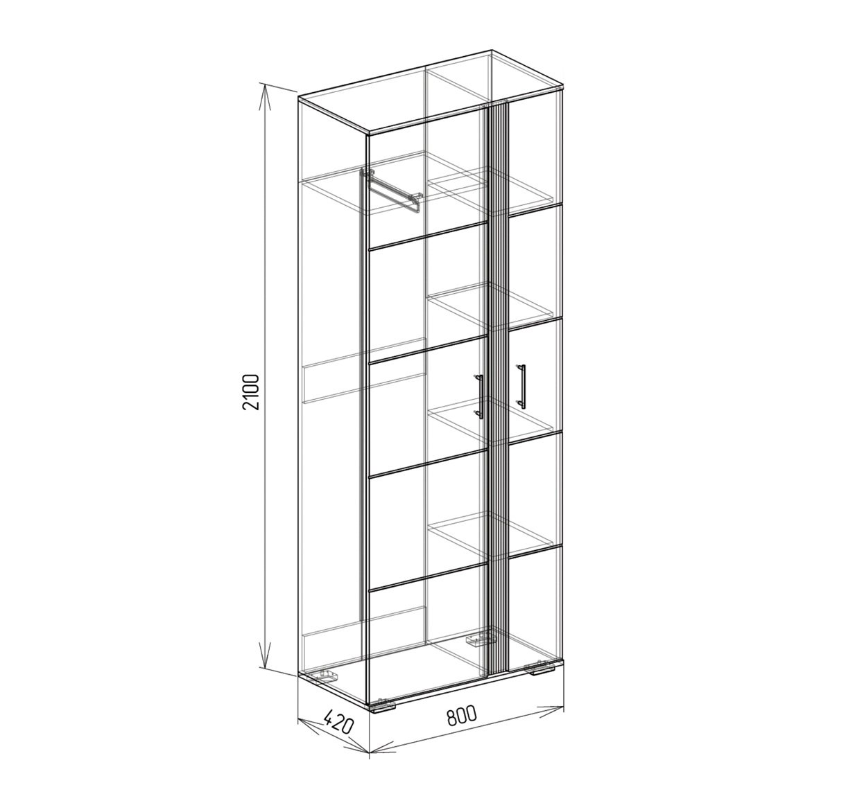 Размеры:Ширина: 80 смВысота: 210 смГлубина: 42 см