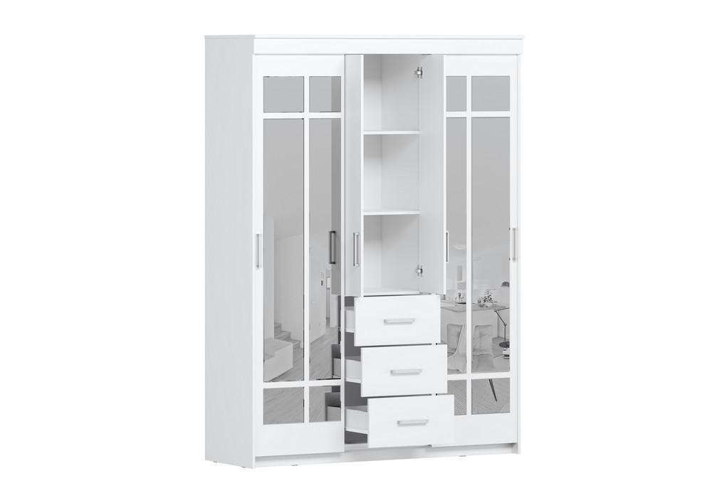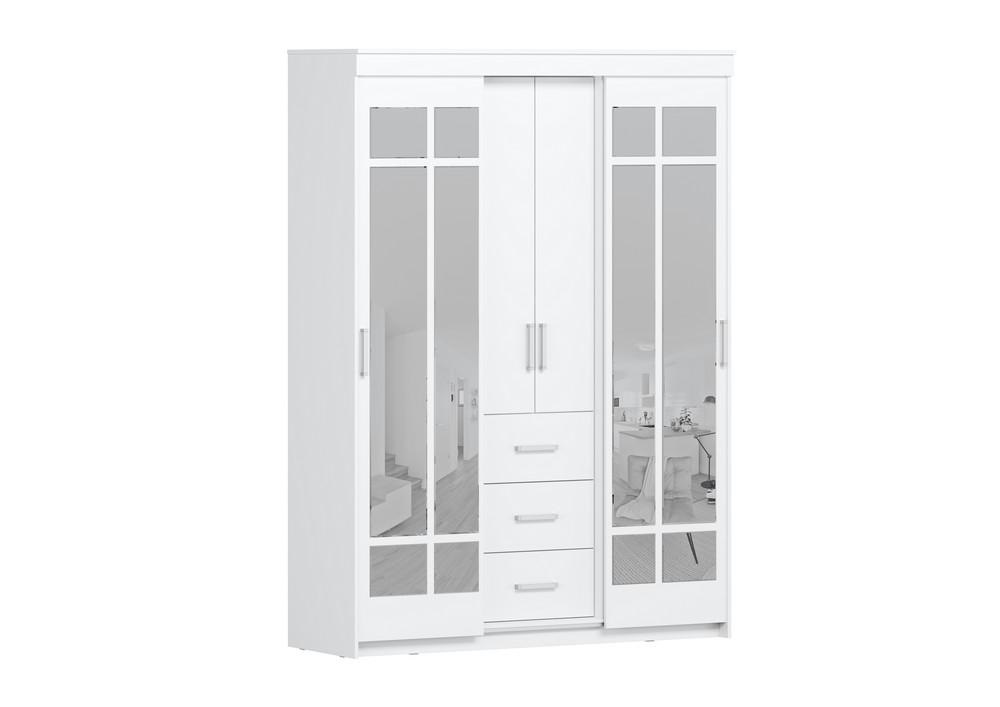 Шкаф-купе Комфорт-6М Белый выполнен в классическом стиле из экологичных материалов. Надежная и удобная в использовании фурнитура, вместительные ящики, декоративные зеркала на створках купе.