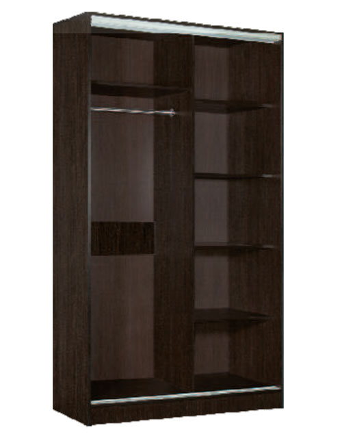 Шкаф-купе Оскар 2.5 с 1 зеркалом / 150 см - выполнен из высокачественного ЛДСП. Направляющие для дверей из алюминия. Ширина шкафа 150 см. Корпус шкафа можно заказать в цвете Венге, Дуб сонома или Дуб молочный. Наполнение шкафа классическое - справа четыре полки, а слева платяное отделение с горизонтальной штангой под одежду.