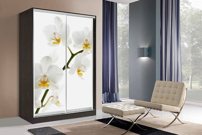 Шкаф-купе Оскар 2-х дверный с фотопечатью - выполнени из высокачественного ЛДСП. Направляющие для дверей из алюминия. Ширина шкафа 150 см. Высота - 220 см, 230 см или 240 см. Корпус шкафа можно заказать в цвете венге, дуб молочный и дуб сонома. Также на выбор есть 2 принта на стекла - Лондон и Орхидеи. Наполнение шкафа классическое - справа четыре полки, а слева платяное отделение с горизонтальной штангой под одежду.