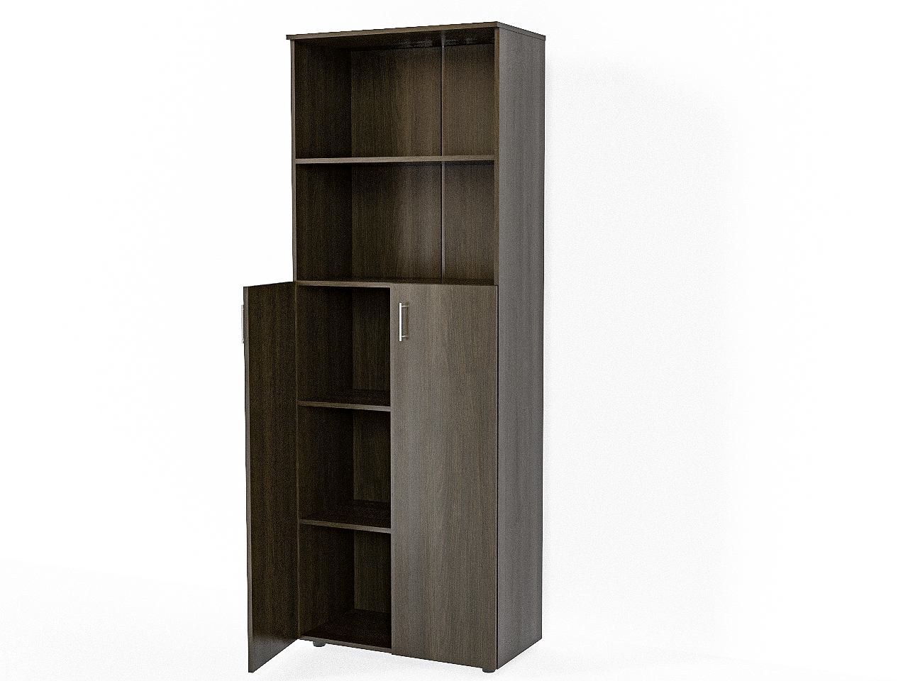 Шкаф-стеллаж №3 - современный необычный стеллаж для хранения книг, документов, небольших вещей в офисе или дома. Идеально подходит для организации рабочего или учебного места. Стеллаж выполнен в цвее Венге. Каркас стеллажа сделан из качественного ЛДСП (16 мм). В стеллаже 5 полок (2 открытые). Ручки металлические, двери распашные с четырехшарнирными петлями.