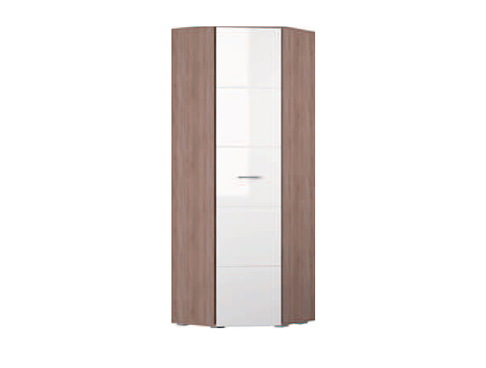 Шкаф угловой Барселона- идеальное решение для экономии пространства. Угловой шкаф может служить настоящей гардеробной. В нем могу храниться вещи разного типа за счет наличия в нем полок разного размера и штанги. Шкаф выполнен в цветах Винтаж Оксид/Белый Глянец. Фасад дверцы изготовлен из МДФ. В дверях установлены петли с доводчиками, ручка двери металлическая. Задний щит (ДВП) в цвет корпуса. Наполнение шкафа- штанга и шесть полок на разных уровнях.