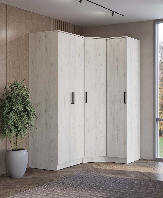 Недорогой и практичный Шкаф угловой Фиеста Дуб Крафт белый отлично впишется в ваш интерьер. Вы можете установить его в спальне, гостиной, прихожей и даже в детской. Этот шкаф по цене от производителя станет отличным выбором для вашей комнаты!  Наполнение - полки и штанга. ЛДСП 16 мм. Цвет корпуса и фасадов Дуб Крафт Белый.