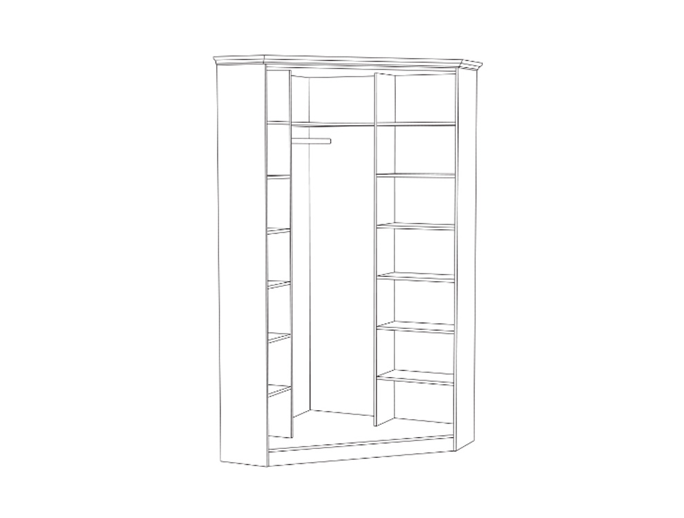 Шкаф для одежды Ливерпуль- идеально подходит для установки в спальне Ливерпуль и прекрасно экономит место. Шкаф угловой, поэтому максимально полезно займет пространство в спальне. Шкаф очень вместительный и функциональный. На 13 полках и вешалке вы легко разместите большую часть своего гардероба. Шкаф выполнен в цветах Ясень ваниль и Белый. Фасады изготовлены из МДФ с красивой текстурой. Двери на четырехшарнирных петлях. Металлические стильные ручки. Наполнение шкафа - полноразмерная штанга и полки. Карниз входит в стоимость шкафа.