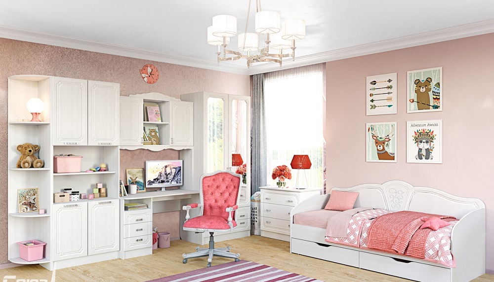 Спальня Тиффани для детской или подростковой комнаты однозначно покорит сердечко вашей принцессы. Корпус изготавливается из ЛДСП 16 мм в цвете Бодега, фасады МДФ с фрезеровкой в цвете Рельеф пастель. Ящики на полновыкатных шариковых направляющих.