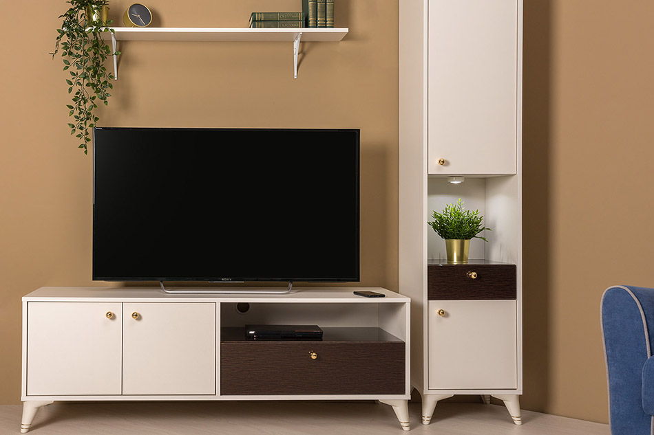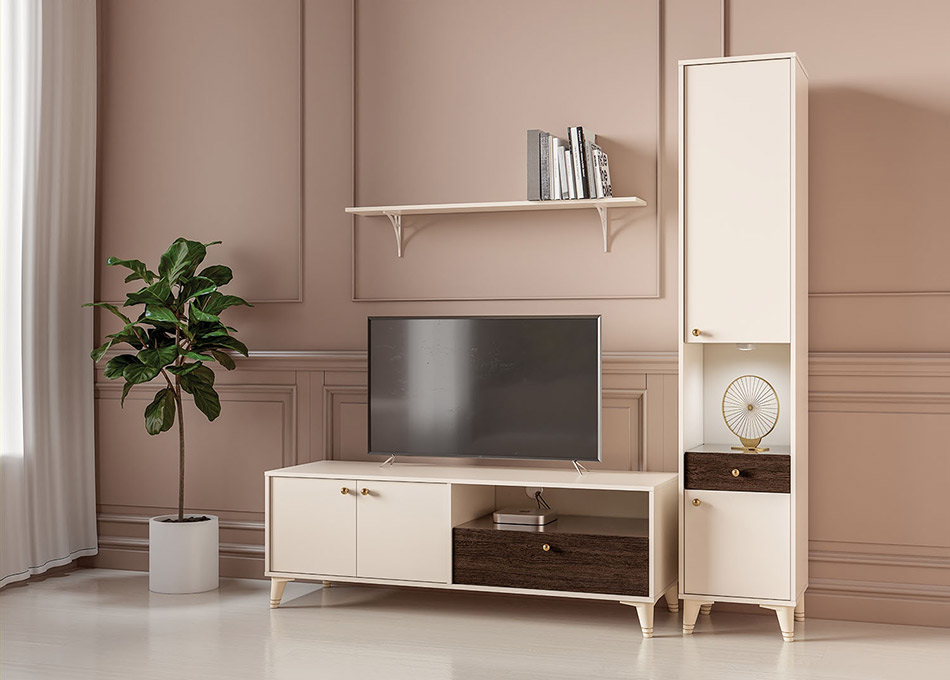 Мягкая и приятная цветовая гамма привлекут вас и ваших гостей своей утонченностью: шоколадный оттенок глянцевого дерева с золотистым отблеском "заиграет" при любом освещении, а в сочетании с точечной подсветкой и "золотыми" ручками придаст вашему дому изысканный и легкий образ.