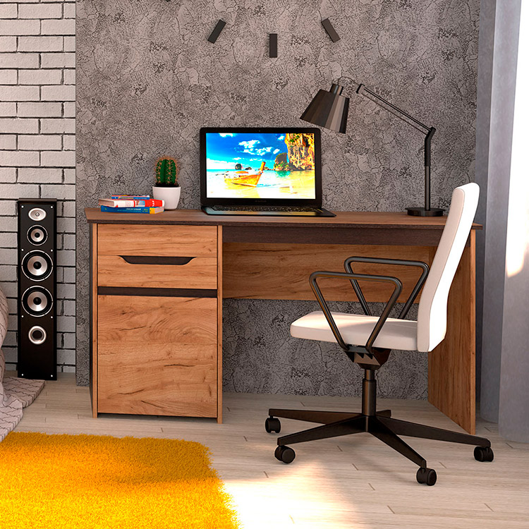 Стол Афина А-6а - элемент мебели с природными текстурами, которое очень актуально для рабочих пространств. Мягкий эффект усилен сглаженными углами на всех элементах мебели. Справа тумба с одним выдвижным ящиком на шариковых направляющих полного выдвижения и дверью.