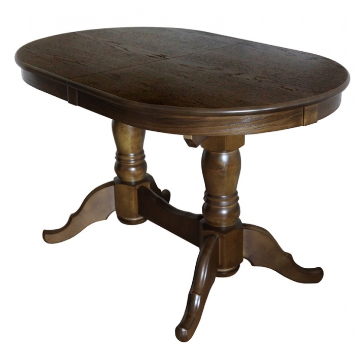 Стол раздвижной, вставка прямая. Низ стола изготовлен из массива березы, столешница из МДФ с отделкой натуральным шпоном. Доступен для заказа в трех цветах - Венге, Орех и Махагон.