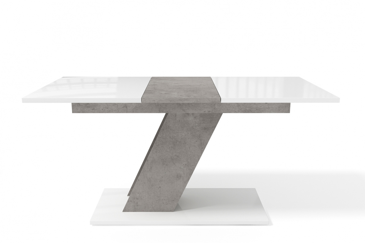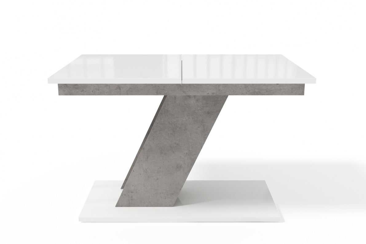 Стол однотумбовый Мемфис выполнен в сочетании цветов ЛДСП Белый и Бетон. Столешница глянцевая белого цвета. Вставка стола в цвет опоры.