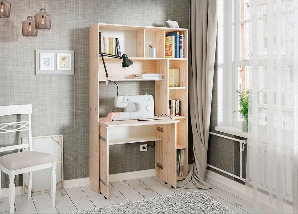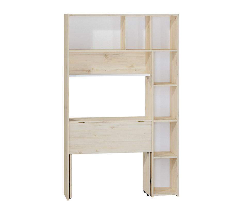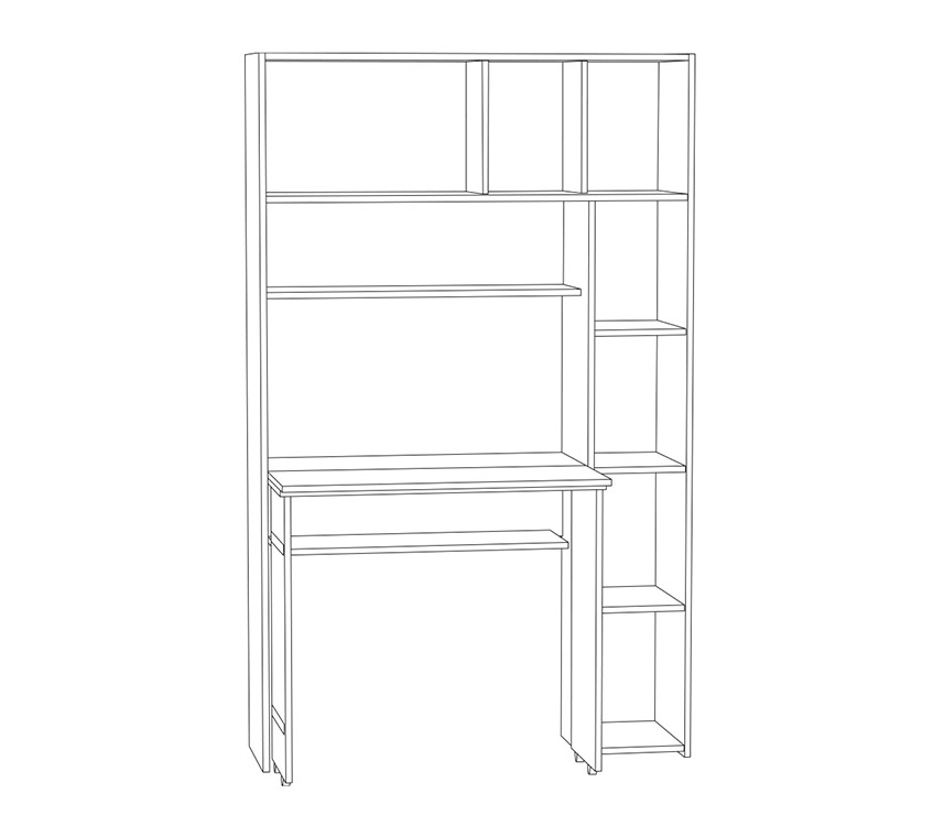 Стол рабочий Комфорт 12.94 подойдет в каждый интерьер. Удивительно удобный модуль в сложенном состоянии представляет собой функциональный и очень компактный стеллаж с множеством открытых ниш, а также закрытой системой хранения с откидной крышкой. Но как только вы разложите откидной столик и бортики-ножки на четырехшарнирных петлях, то вы сразу получите полноценное рабочее пространство, где можно разместить ноутбук или письменные принадлежности. ЛДСП: 16 мм.
