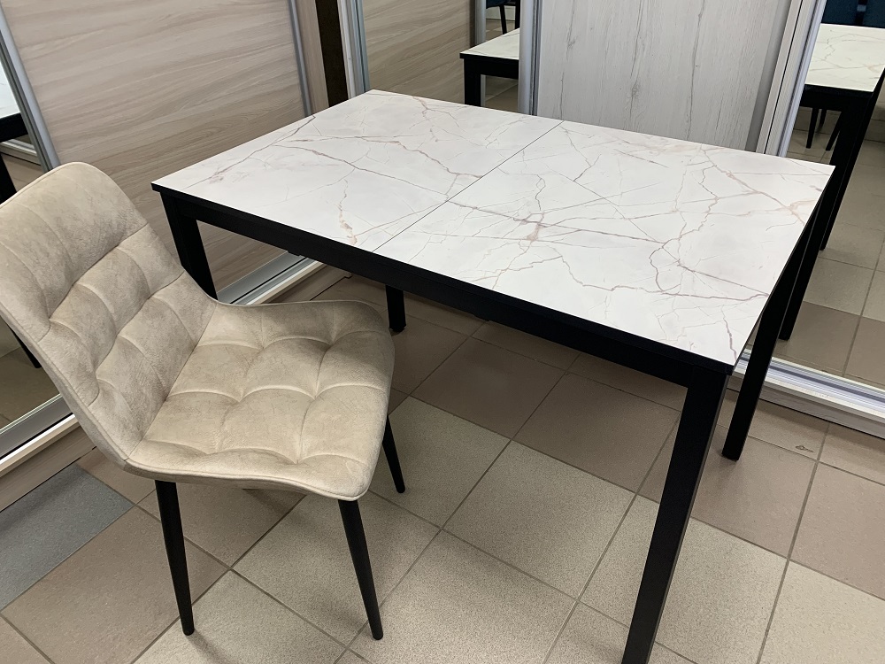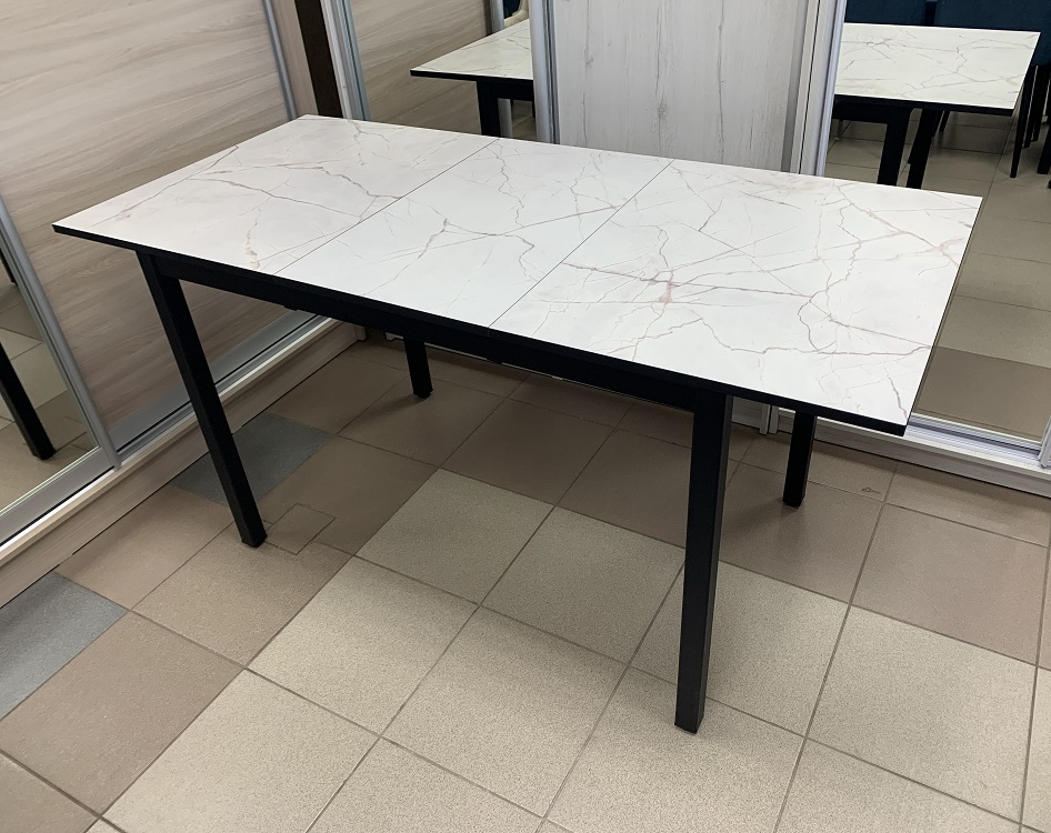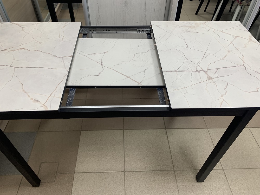 Стол раскладной с влагостойкой пластиковой столешницей Норд - эстетичный, практичный и надежный. Вставка с продолжением рисунка хранится под столешницей стола. Каркас и ножки стола изготовлены из металла.