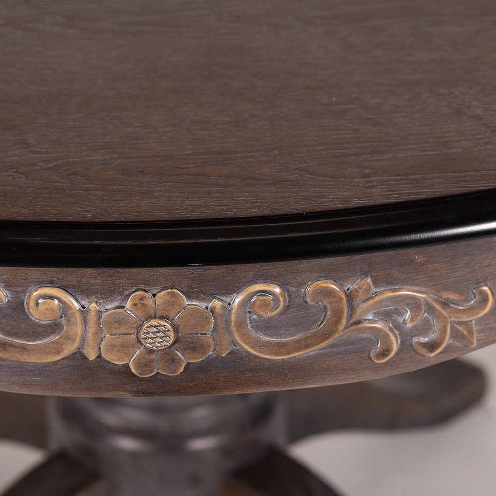 Мебель произведена из натурального экологичного дерева гевеи с использованием МДФ и шпона. Удивительно красивый рисунок столешницы и дизайн витых ножек не оставит вас равнодушными.