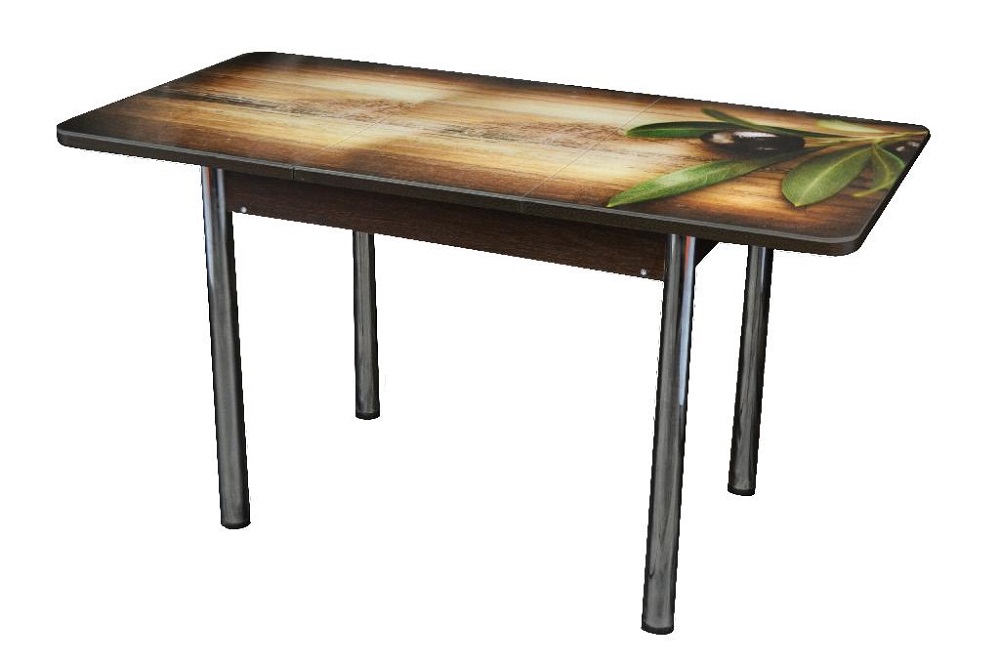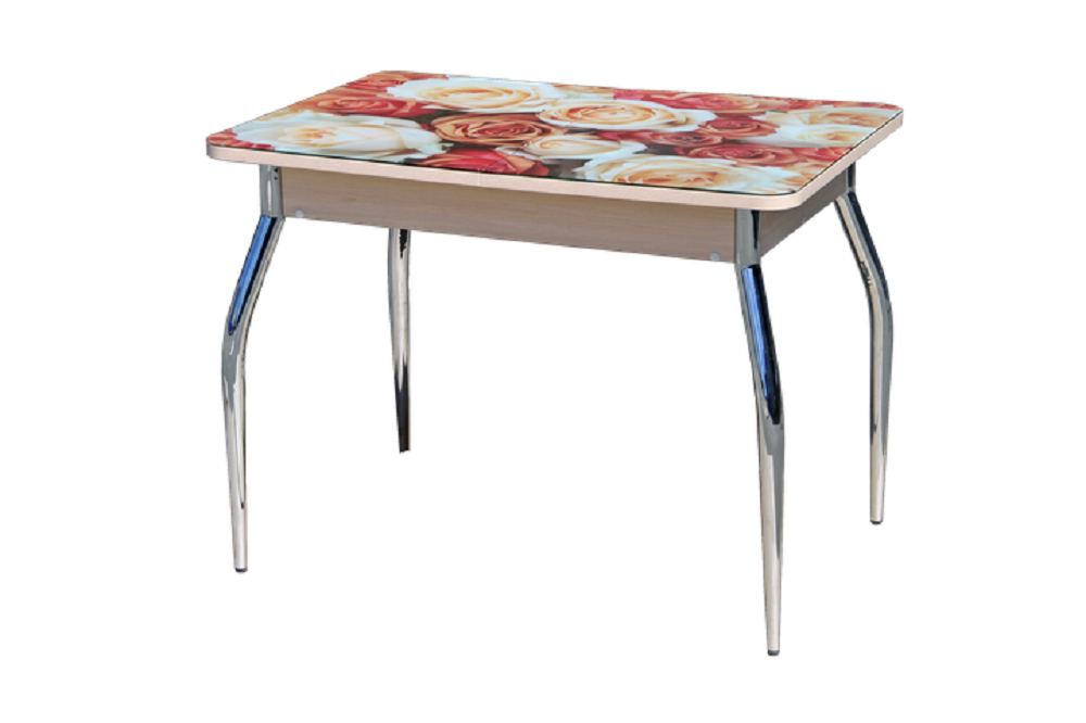 Стол с фотопечатью Вальс раскладной украсит Вашу кухню своей яркостью. Столешница стола выполнена из ЛДСП + закаленное стекло с фотопечатью и кантом из ПВХ толщиной 2 мм. Опора - хром либо прямые, либо изогнутая. На выбор представлено множество вариантов принта на столешницу.