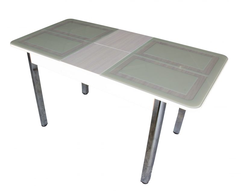 Столешница стола - закаленное стекло, ножки - хромированный металл. Вы можете выбрать понравившийся цвет столешницы. Плита ЛДСП - 16 мм. Механизм раскладки "Бабочка".