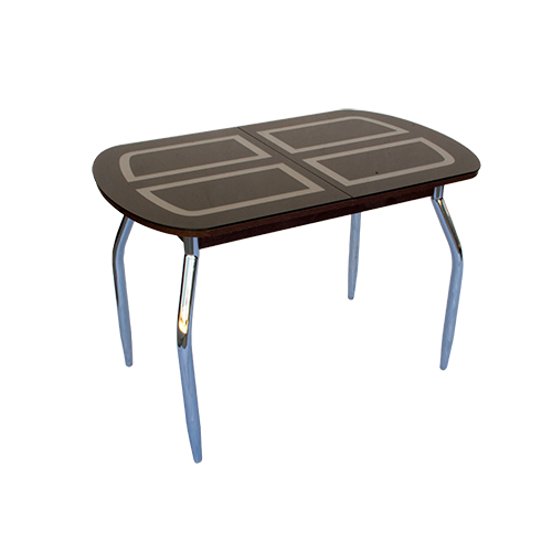 Столешница стола - закаленное стекло, ножки - хромированный металл. На выбор представлено три варианта размера столешницы. Так же Вы можете выбрать понравившийся цвет столешницы. Плита ЛДСП - 16 мм. Механизм раскладки "Бабочка".