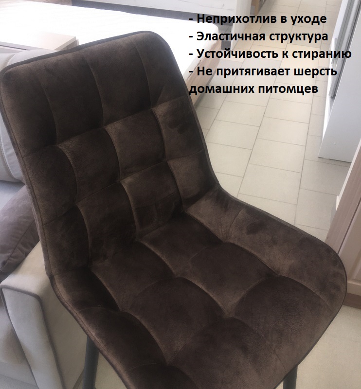 Каркас стула изготовлен из гнутоклееной фанеры, опоры металлические. Обивка сиденья - ткань велюр. На выбор одиннадцать вариантов цвета ткани:Велюр V001, V002, V003, V004, V005, V006, V007, V008, V009, V010, V011Велюр- Имеет приятную бархатистую поверхность;- Обладает износостойкостью;- Не притягивает пыль и мелкую шерсть домашних питомцев, легкоочищается пылесосом;- Не выгорает даже при длительном воздействии солнечных лучей;- Имеет высокий уровень прочности, за счет чего практическине подвержен механическим воздействиям.- Приятная матовая фактура;- Обладает высокой прочностью, так как изготавливаетсяна тканой основе;- Неприхотлив в уходе;- Эластичная структура;- Устойчивость к стиранию.
